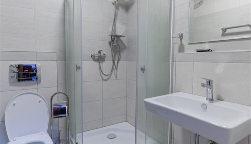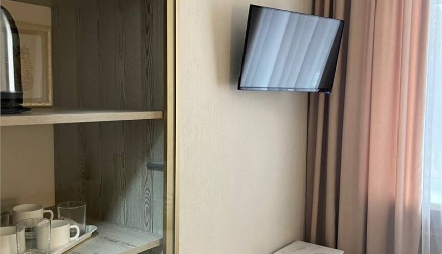 Из оборудования в номере есть кондиционер, мини-холодильник, набор посуды и телевизор. Санузел оснащён душевой кабиной, в номере есть туалетные принадлежности и фен.