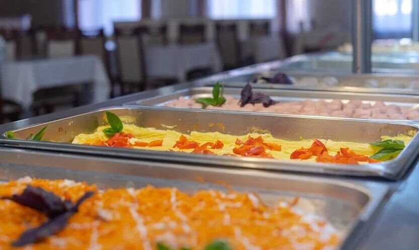 В санатории «Криница» организовано трехразовое питание по типу «шведский стол» (корпус №1), что позволяет каждому гостю выбрать блюда по своему вкусу и составить полноценный, сбалансированный рацион.